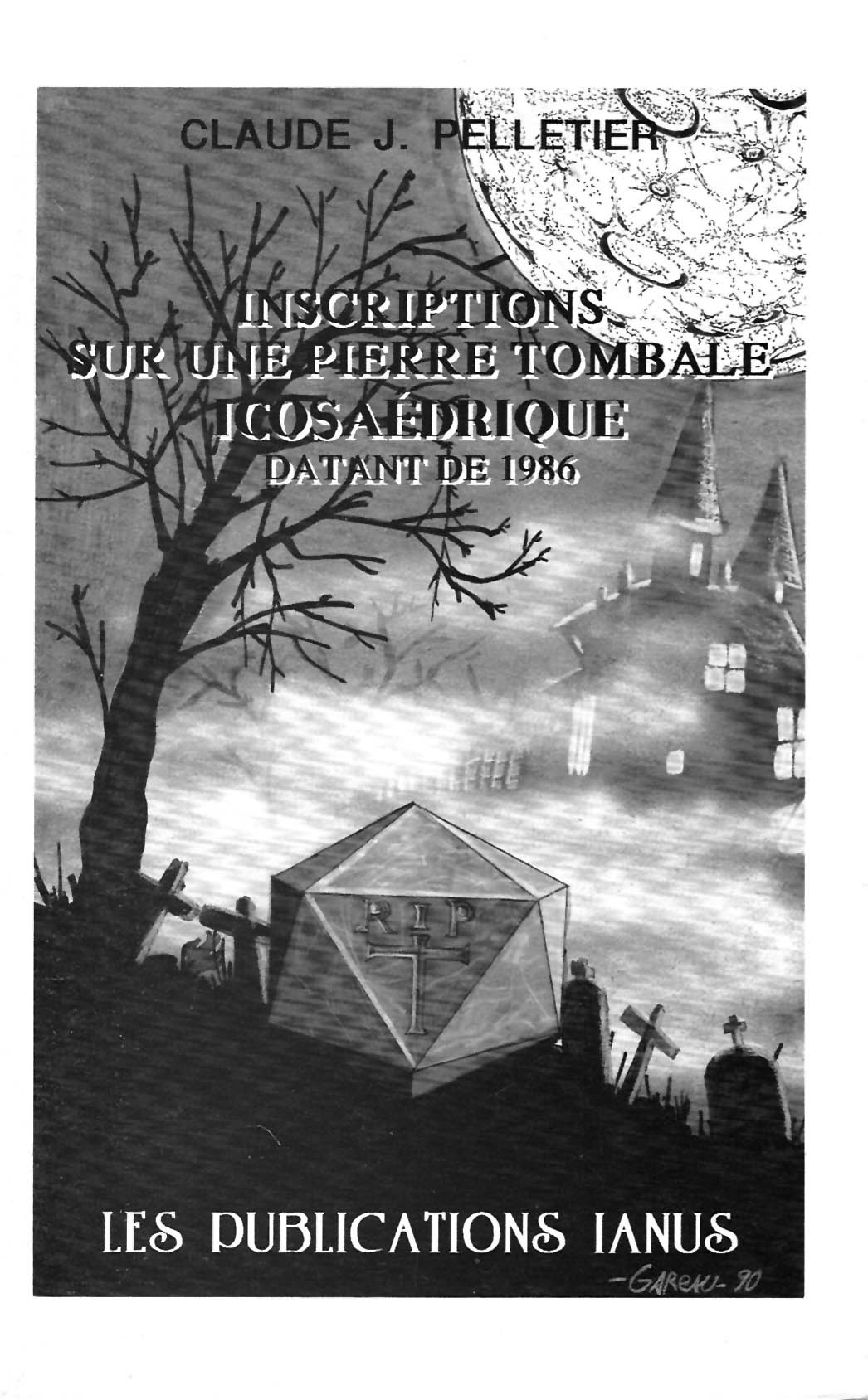 Inscriptions sur une pierre tombale icosaèdrique datant de 1986, par Claude J. Pelletier. Laval: Publications Ianus, Février 1990. 54 pages. ISBN 2-9801683-1-9. Édition limitée à soixante-quinze exemplaires. [BAnQ • WorldCat]