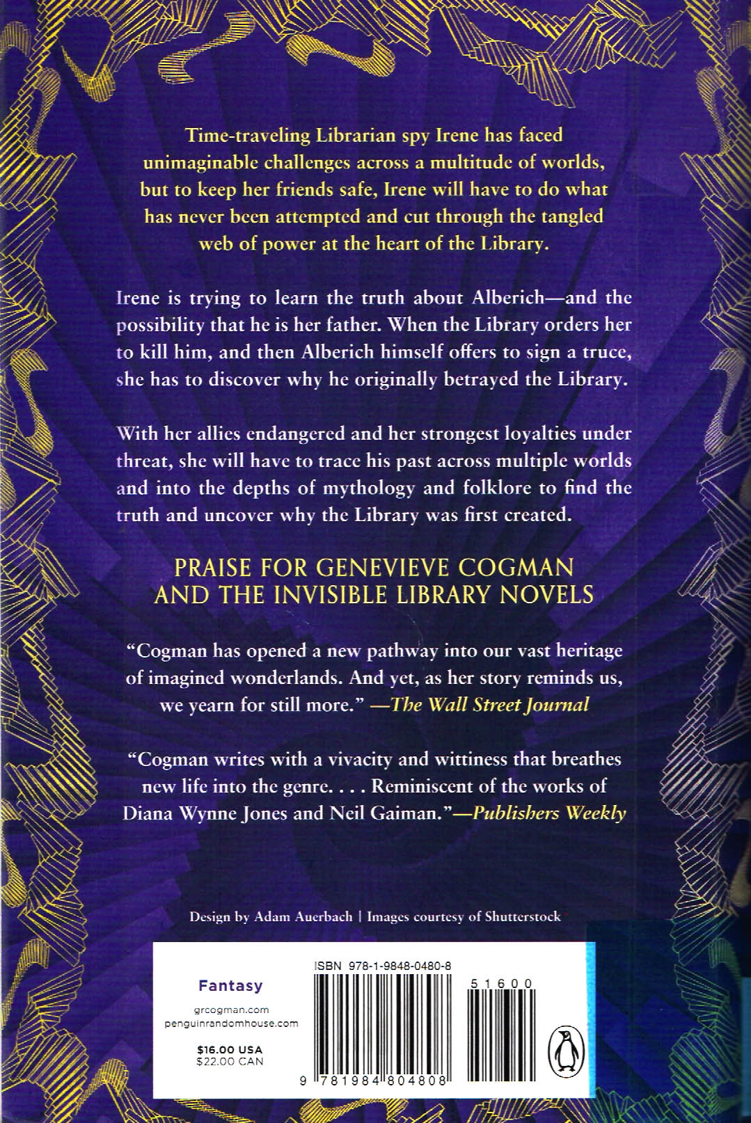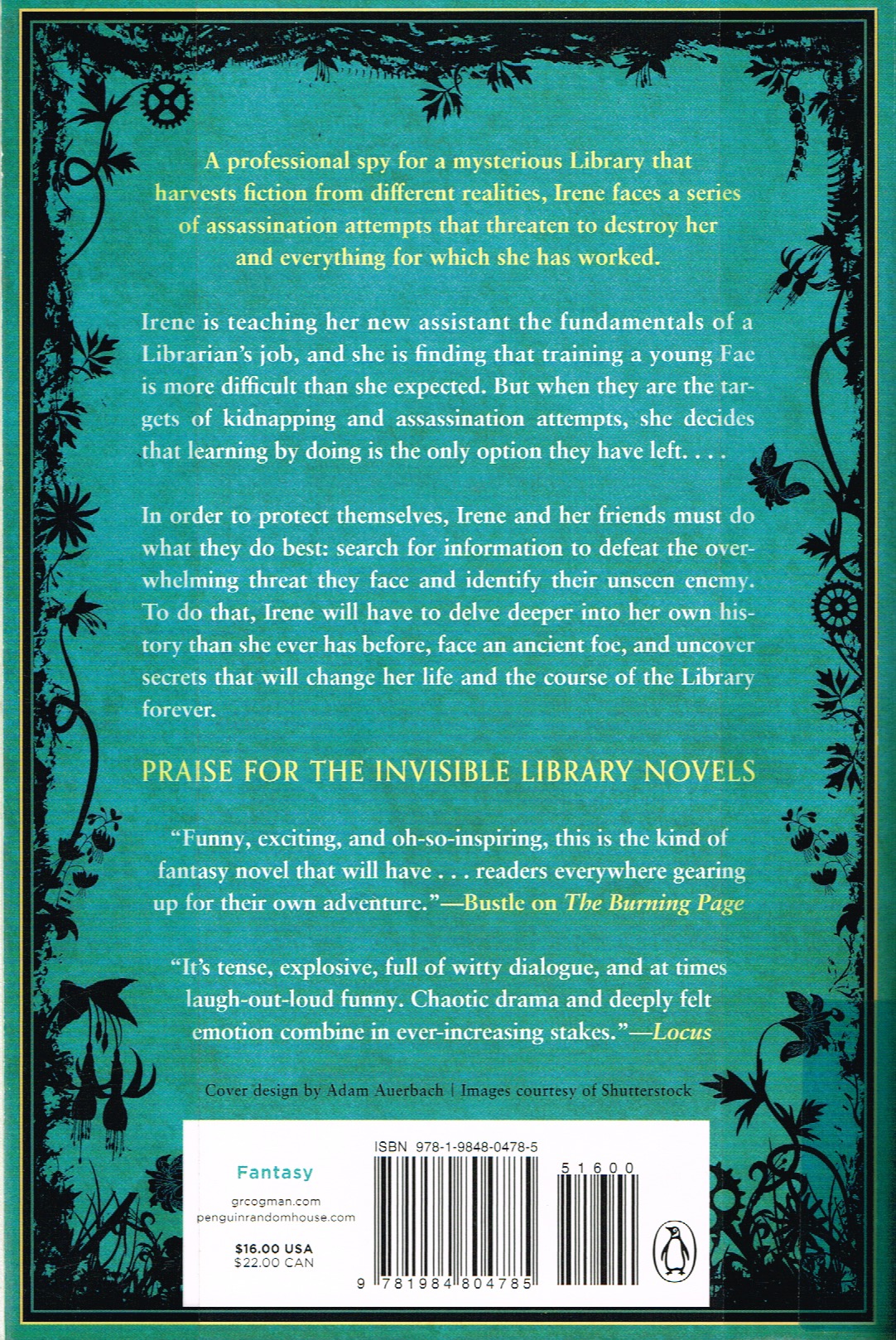 In order to protect themselves, Irene and her friends must do what they do best: search for information to defeat the overwhelming threat they face and identify their unseen enemy. To do that, Irene will have to delve deeper into her own history than she ever has before, face an ancient foe, and uncover secrets that will change her life and the course of the Library forever.”  [Text from the publisher’s website ; see also the backcover]