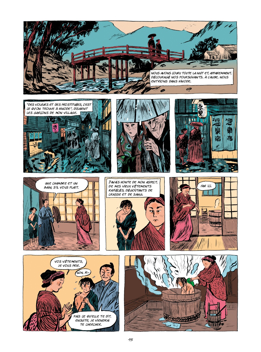 Je n’ai malheureusement pas encore lu le roman original de Lian Hearn (Tales of the Otoriqui se décline en cinq volumes: Across the Nightingale Floor (2002), Grass for His Pillow (2003), Brilliance of the Moon (2004), The Harsh Cry of the Heron (2006), Heaven’s Net is Wide (2007), plus les prequels Shikanoko (4 vol., 2017) et Children of the Otori (2 vol., 2020)). C’est cependant sur ma liste de lecture (quoi que lire l’adaptation BD pourrait représenter la voie paresseuse…). J’ai toujours cru qu’il s’agissait d’un roman historique mais c’est en fait un récit de fantasy historique qui se déroule dans un Japon féodal imaginaire.