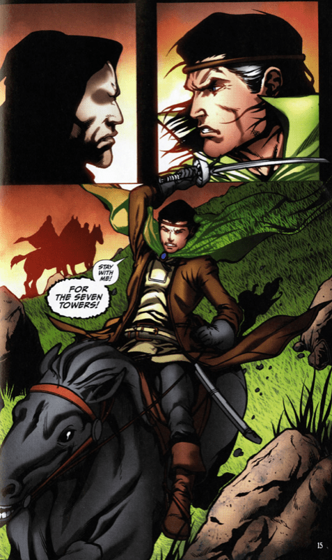 WheelOfTimeComic-3-Cov“Created with the cooperation of the Jordan estate, adapted by well-known comics writer Chuck Dixon and illustrated by the talented Chase Conley, The Eye of the World: The Graphic Novel has been hailed as an exciting interpretation of Robert Jordan’s classic fantasy novel. It features brilliant interior art by Marcio Fiorito and Francis Nuguit, and stunning covers by Jeremy Saliba and Seamus Gallagher.
