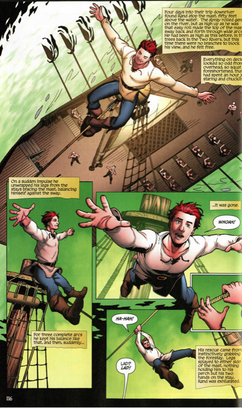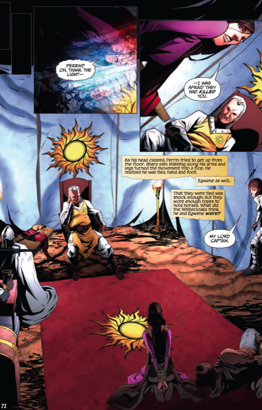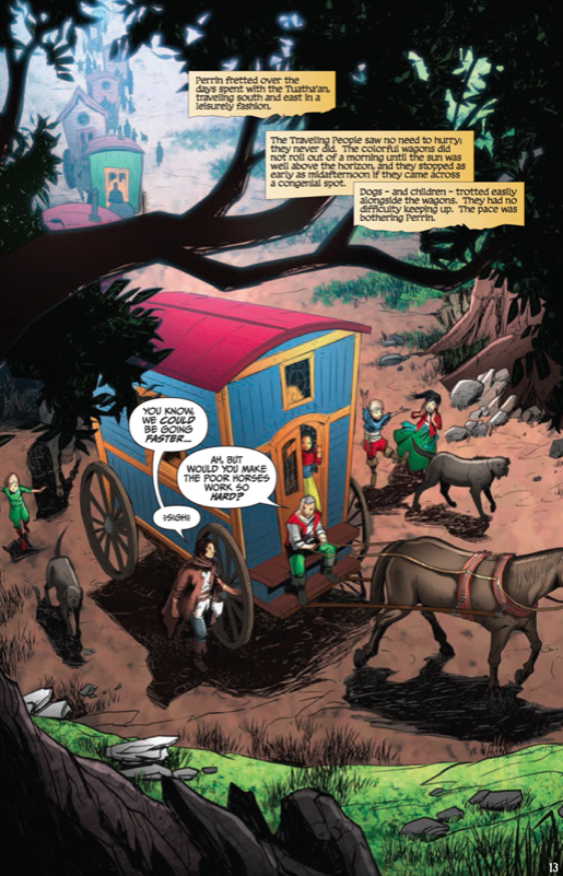 In The Eye of the World: the Graphic Novel, Volume Five, Rand al’Thor and his friends and companions have been separated by attacks by Darkfriends and scattered across the lands. Having persevered, they make their way to Caemlyn, where they hope to be reunited. But their roads have grown ever more dangerous.