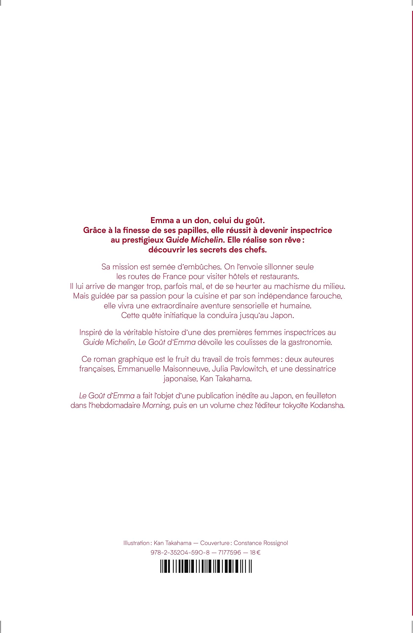 “Emma a un don, celui du goût. Grâce à la finesse de ses papilles, elle réussit à devenir inspectrice au prestigieux Guide Michelin. Elle réalise son rêve : découvrir les secrets des chefs.