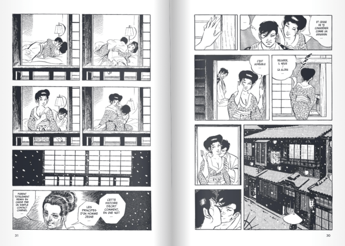 Confidences d’une prostituée nous offre un récit dur et tragique mais aussi très humain et sensible. En recueillant ces histoires entendues dans le salon de coiffure de son père et en les transmettant au travers d’un manga, Takao Saitô préserve ainsi un témoignage précieux de la petite histoire du Japon d’avant-guerre. Ce propos fort intéressant est assez bien illustré par le style réaliste de Saitô qui s’apparente aux mangas dramatique pour adultes (gekiga, littéralement “dessins dramatiques“) traitant de sujets plus sombre et sérieux et  caractérisé par un style angulaire et cinématique, fait de hachures sombres et des lignes granuleuses. Un très bon manga qui mérite d’être lu surtout si l’histoire et la culture japonaise vous intéresse.