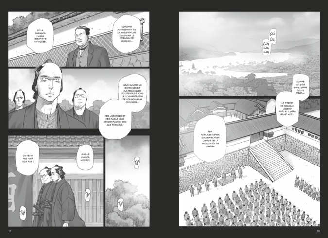 Les saisons d’Ohgishima est un très beau manga malgré le style un peu particulier de Kan Takahama (quoiqu’il s’améliore d’année en année — ou alors on apprends plus à l’apprécier). Les personnages sont attachants et il est captivant de suivre leurs activités quotidiennes. Il nous offre une agréable lecture qui est à la fois divertissante et instructive puisque ce manga nous fait découvrir une période mouvementé qui constitue sans aucun doute l’époque la plus intéressante de toute l’histoire japonaise. Il ne reste plus qu’un tome, déjà paru au Japon et qui paraîtra au début d’avril en France. J’ai bien hâte de voir comment cela va se terminer… À lire absolument surtout si vous êtes un fan de Takahama ou que l’histoire du Japon vous intéresse.