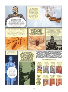 Dans la troisième partie, “Le Japon en toile de fond”, on aborde le fait qu’une bonne partie de l’oeuvre de Miyazaki est profondément ancrée dans la culture Japonaise (notamment ses mythes et ses religions) et on présente en deux ou trois pages les oeuvres en question (Princess Mononoke; Le Voyage de Chihiro; Nausicaä de la vallée du vent; Kiki la petite sorcière; Le Château dans le ciel). On y parle également de son travail de mangaka (où il crée des oeuvres “plus sombre et plus adulte” qui, a quelques exceptions, n’ont pas été traduites: Le peuple du désert, Nausicaä, Imotô, Le Voyage de Shuna, L’Ère des hydravions, Notes de rêveries, Le retour de Hans, Des tigres couverts de boue, Le vent se lève, Diner dans les airs, Illusions de Westall: Une excursion à Tynemouth), de sa vision du féminisme et de la grande influence qu’il a eut sur l’animation japonaise (Nadia, le secret de l’eau bleue est basé sur une adaptation de Vingt mille lieux sous les mers que Miyazaki avait débuté pour Tōhō, mais jamais complétée, et qui fut reprise par Gainax et Hideaki Anno).