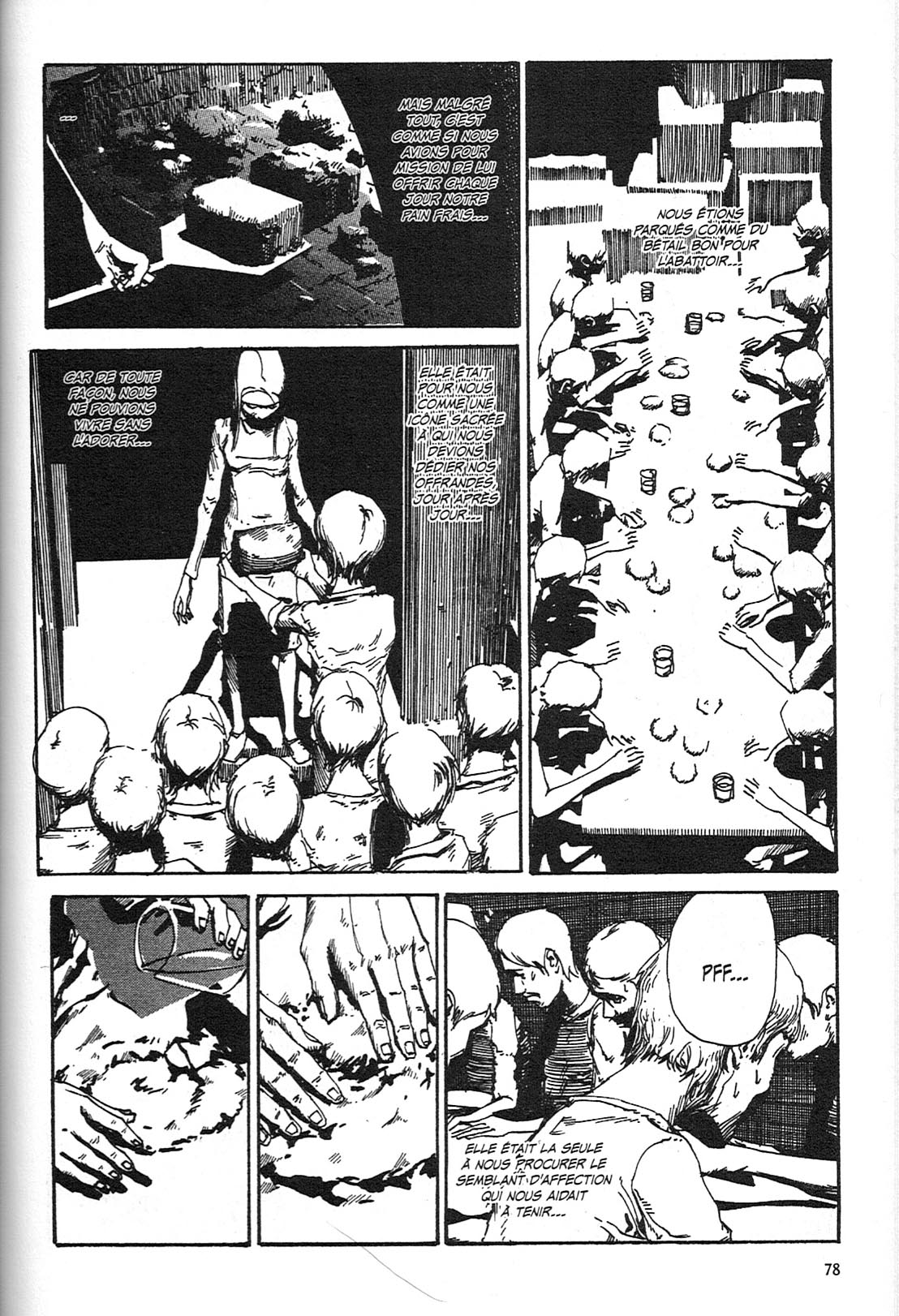 Dans “Le Temple“, le seul survivant d’un U-Boat allemand échoué écrit sur sa découverte d’un temple de style hellénique sous la mer… La nouvelle originale a été écrite par Lovecraft en 1920 et publié dans Weird Tales #24 en septembre 1925. Tanabe publie son adaptation (「神殿」/ Shinden / lit. « Temple » ; 64 pages) dans les numéros de mars et avril 2009 de Comic Beam. Comme d’habitude, l’adaptation de Tanabe est assez fidèle – à part le fait qu’il a déplacé la chronologie de la Première Guerre mondiale à la Seconde Guerre mondiale.