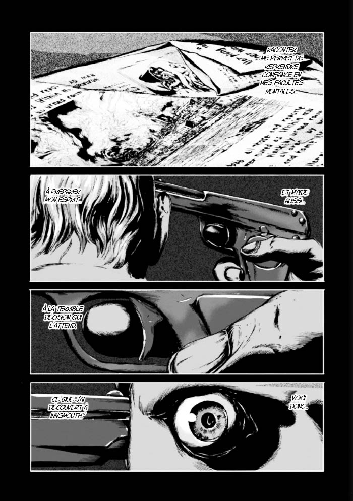 Quelques générations plus tôt, le capitaine Obed March aurait livré la cité aux griffes d’innommables créatures marines pour construire sa fortune ! Ébranlé, Robert n’a plus qu’une idée en tête : quitter ce terrible endroit. Mais sa curiosité pourrait encore lui coûter cher…