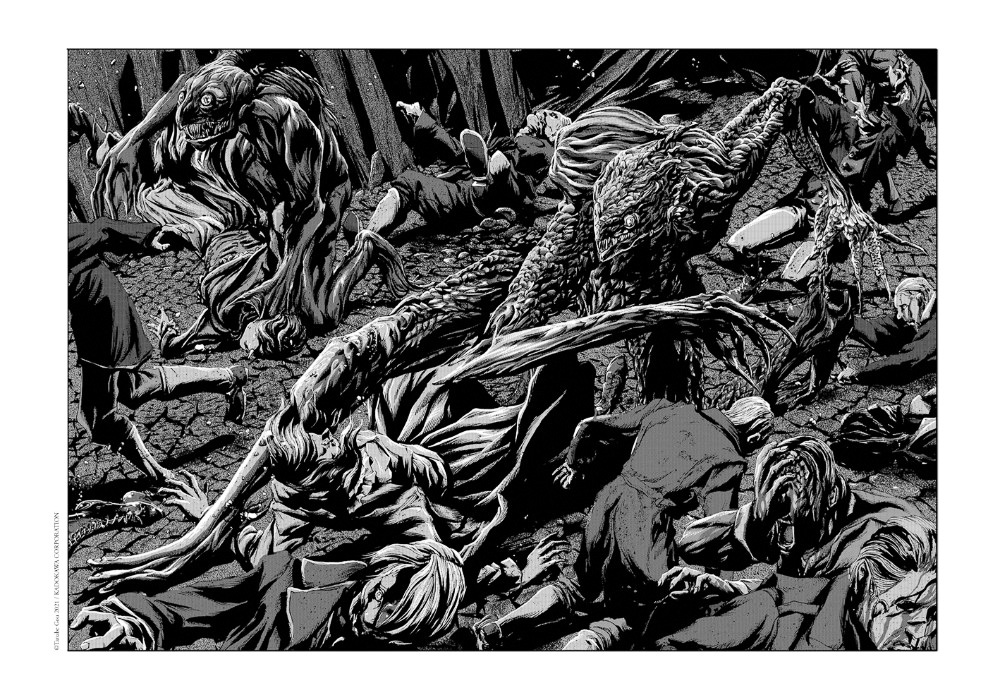 De son trait sombre et réaliste reconnaissable entre tous, Gou Tanabe met en images les pires cauchemars imaginés par H. P. Lovecraft, le maître du fantastique et de l’horreur. Aux frontières des mondes, les protagonistes mènent une lutte sans espoir pour ne pas sombrer dans la folie !”