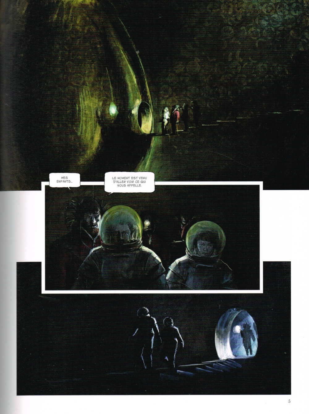 J’ai déjà commenté la version anglaise des premiers volumes de cette série d’adaptation en BD de nouvelles de l’excellent auteur de science-fiction chinois Liu Cixin: 1. Sea of Dreams, 2. The Wandering Earth, 3. The Village Teacher, ainsi que 4. YuanYuan’s Bubbles (publiés au USA dans la série “Liu Cixin Graphic Novels” de Talos Press). Pour des raisons pratiques (rapidité de publication et disponibilité) je vais poursuivre ma lecture avec l’édition française qui est publiée chez Delcourt sous le titre “Les Futurs de Liu Cixin”. L’édition française se fait dans un ordre légèrement différent et à ce qui semble être un rythme effréné (à peu près un album par mois!): 1. Terre Vagabonde (mars 2022, par Christophe Bec, Stefano Raffaele et Marcelo Maiolo), 2. Pour que respire le désert (mai 2022, par Valérie Mangin, Steven Dupré et Cyril Saint-Blancat), 3. Les trois lois du monde (mai 2022, par Xiaoyu Zhang et Pan Zhiming), 4. Nourrir l’Humanité (juin 2022, par Sylvain Runberg et Miki Montllò) et 5. La perfection du cercle (août 2022, par Xavier Besse). La série se poursuit ensuite avec les titres suivants: 6. Proies et Prédateurs (octobre 2022, par Jd Morvan, Yang Weilin et Hiroyuki Ooshima), 7. L’Attraction de la foudre (novembre 2022, un imposant album de 272 pages! Par Thierry Robin et Cyril Saint-Blancat), 8. Brouillage intégral (janvier 2023, par Marko Stojanovic, Maza et Desko), 9. La Terre transpercée (février 2023, par Wu Qingsong), 10. L’Ère des anges (mars 2023, par Sylvain Runberg et Ma Yi), 11. Au-delà des montagnes (avril 2023, par Eduard Torrents et Ruben Pellejero), 12. Le calcul du papillon (par Dan Panosian), 13. L’Humanité invisible (par Liu Wei), 14. L’Océan des rêves (par Rodolfo Santullo et JOK), et 15. Les Migrants du temps (par Sylvain Runberg et Serge Pellé).