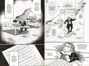 It’s a story about perseverance. It’s funny, the style is rather cartoony, but the storytelling is quite average and the inking is very uneven, often too light, sometimes too heavy and always sketchy. All the characters are over the top psychos! No wonder kids now-a-day are having mental problems… The anime is very faithful to the manga.