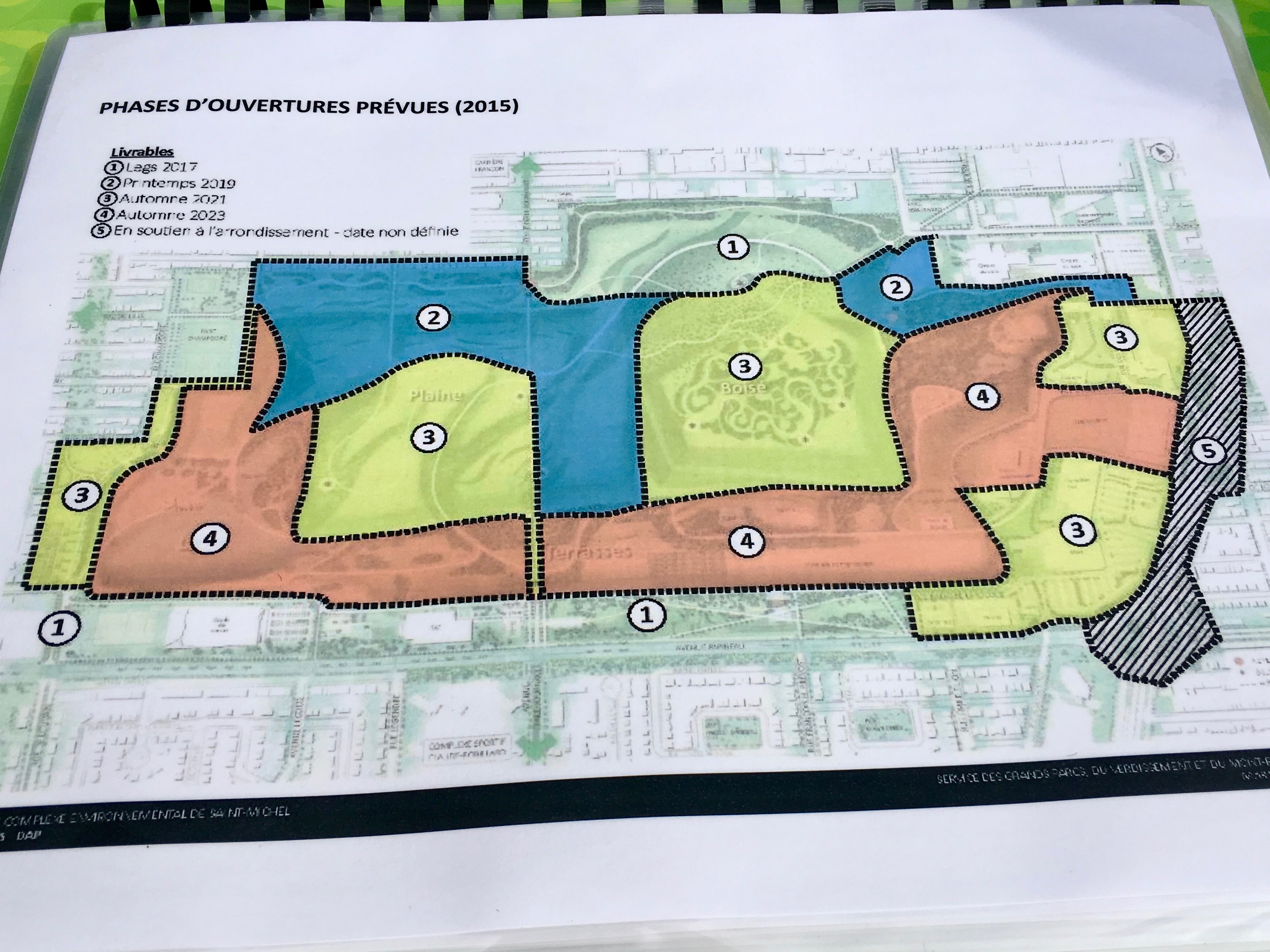 J’ai tendance à prendre mes marches de santé en milieu d’après-midi mais, avec le raccourcissement du jour en cette saison, il m’arrive souvent de me retrouver à traverser le sentier de contournement des travaux à la tombée de la nuit, ce qui est plutôt désagréable étant donné l’absence de lampadaires. Il m’est arrivé de traverser cette section du parc dans l’obscurité presque totale! Heureusement, parfois la lune éclaire le chemin — comme dans cette photo prise le 6 janvier, un peu avant 17h. Vivement la fin des travaux (novembre 2020?) et la réouverture du sentier officiel, qui sera alors doté de lampadaires!