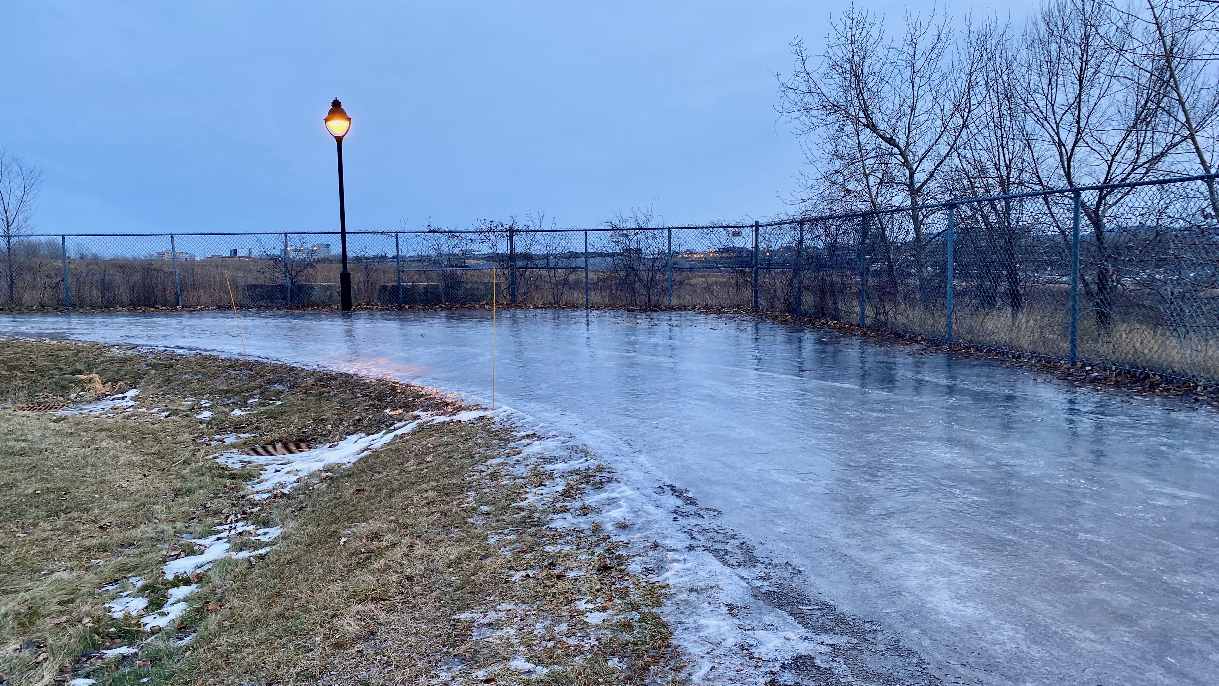 Évidemment, quand il y a du verglas, comme ce 29 décembre (un peu passé 16h), on retrouve le même problème que l’an dernier pour les randonneurs: un épandage d’abrasifs tardif et trop parcimonieux… Il vaut mieux alors éviter le sentier, qui devient une véritable patinoire, et procéder sur la plate-bande de neige ou de gazon. Sinon c’est trop périlleux!