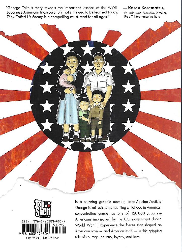 They called us enemy, co-written by George Takei, Justin Eisinger, Steven Scott, and illustrated by Harmony Becker. Marietta: Top Shelf Comics (imprint of IDW Publishing), July 2019. 208 pages, 6.5 x 19 in, $US 19.99 / $C 25.99. ISBN 978-1-60309-450-4. For teenage readers (12+). stars-3-5