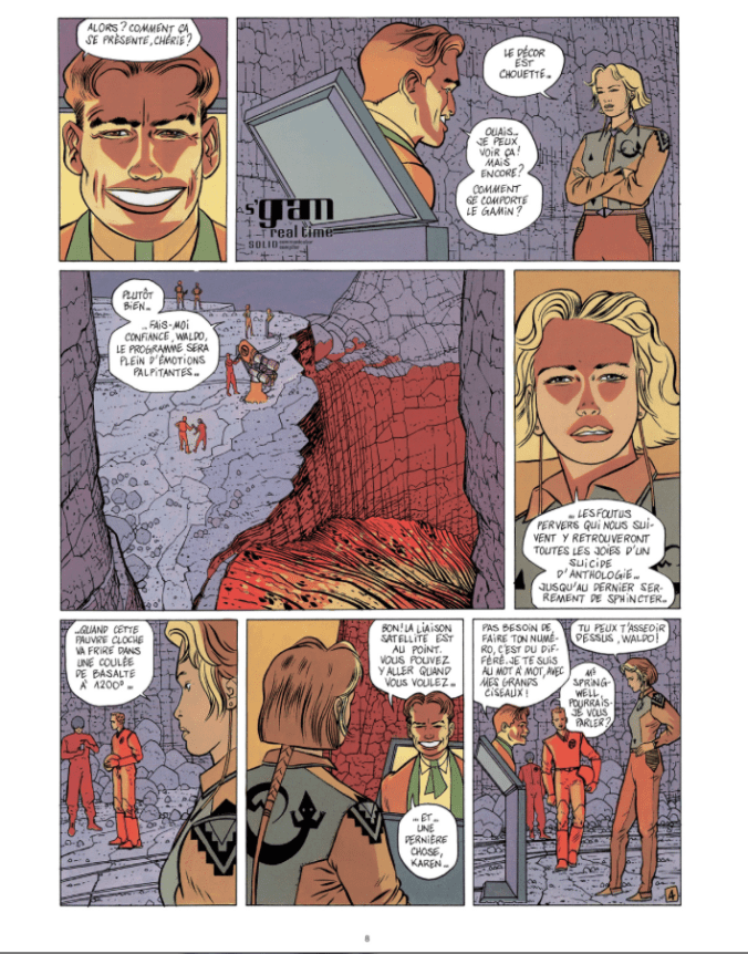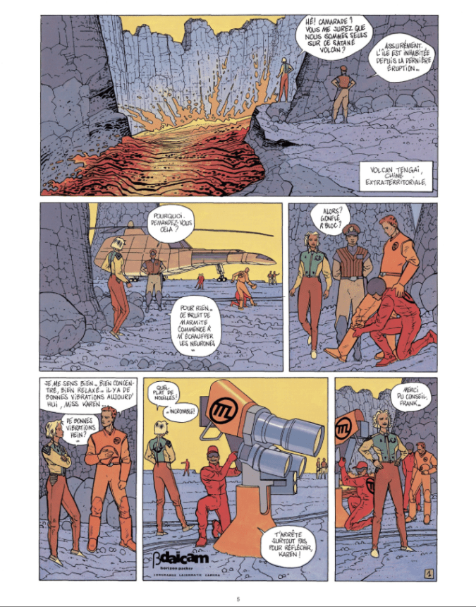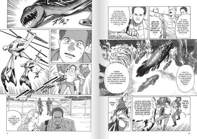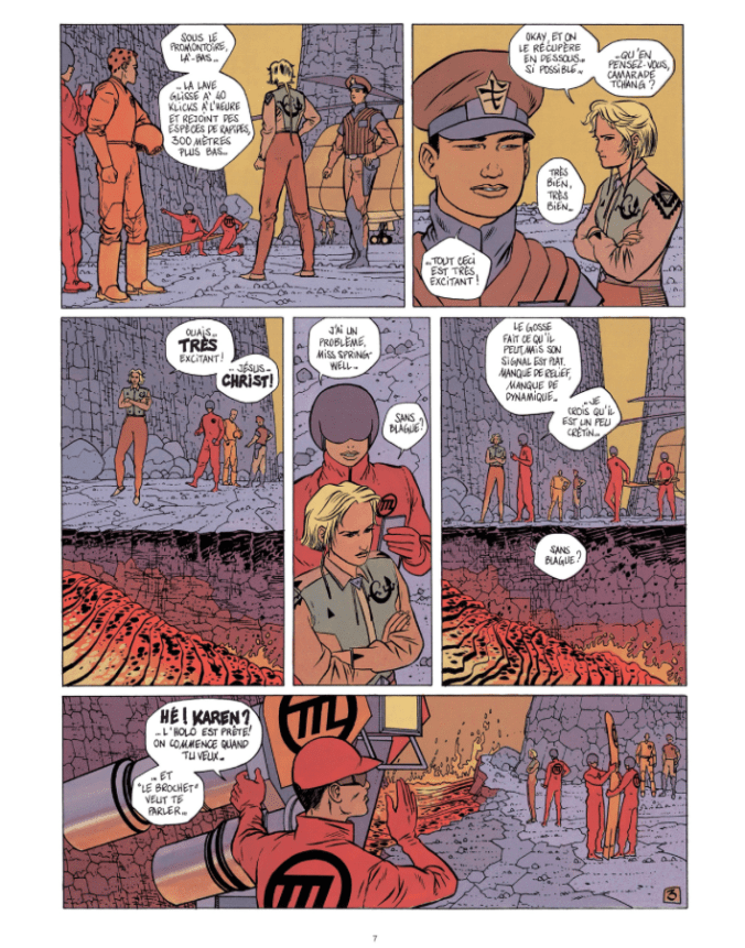 Ce numéro nous présente donc les récits suivants: “L’Océan qui chante” (Fabrizio Dori, 9 pgs, couleur), “Europa” (Fabien Grolleau & Abdel de Bruxelles, 11 pgs, coul.), “Au-delà de l’océan” (Valentin Ramon, 7 pgs, coul.), “Narcose” (Zéphir, 9 pgs, coul.), “La plage” (Simeon van den Ende & Pim Bos, 9 pgs, coul.), “Achane” (Edo Brenes, 9 pgs, coul.), “Pour l’humanité” (Joseph Falzon, 9 pgs, coul.), “Les lueurs de la nuit, l’abîme et le naufragé des étoiles” (Homero Rios & Leno Carvalho, 7 pgs, N&B), “Le plongeon” (Jean-Luc Cornette, 5 pgs, coul.), “La tribu de l’eau” (Marco Taddei & Samuele Canestrari, 7 pgs, duotone), “Thurs. 7:13 PM” (Thomas Bidault, 5 pgs, coul.), “Mocha – Pêche interdite” (Marc Caro & Cecyle Bay, 9 pgs, coul.), “Limon” (Juliette Hayer, 9 pgs, coul.), “Megasillon” (Arthur de Pins, 9 pgs, coul.), “Enterré” (Ryan Barry, 9 pgs, N&B), “Soupe primordiale” (Laurent Siefer, 11 pgs, coul.), “Le pêcheur ds abysses” (Miel Vandepitte, 7 pgs, coul.), “Abyssal transfert” (Richard Guérineau, 9 pgs, coul.), “Chasse sous-marine” (Gloria Ciapponi & Luca Conca, 7 pgs, coul.), “Deux frères” (Gamberoussette, 5 pgs, coul.), “Les astro-nautiques” (Alexandre Ristorcelli, 8 pgs, coul.), “Blind Taste” (Marc Caro, 3 pgs, N&B), “Maelström” (Brouette Hurlante, 5 pgs, coul.), “Intrication au naturel” (Grégory Panaccione & Giorgio Gualandris, 7 pgs, N&B), “Océanisation” (Étienne Appert, 11 pgs, coul.), “La grande marée” (Camille Moulin-Dupré, 9 pgs, N&B), “TOL” (Damien Cuvillier, 5 pgs, coul.), et “Caralisator” (Michaël Sanlaville, 7 pgs, coul.).